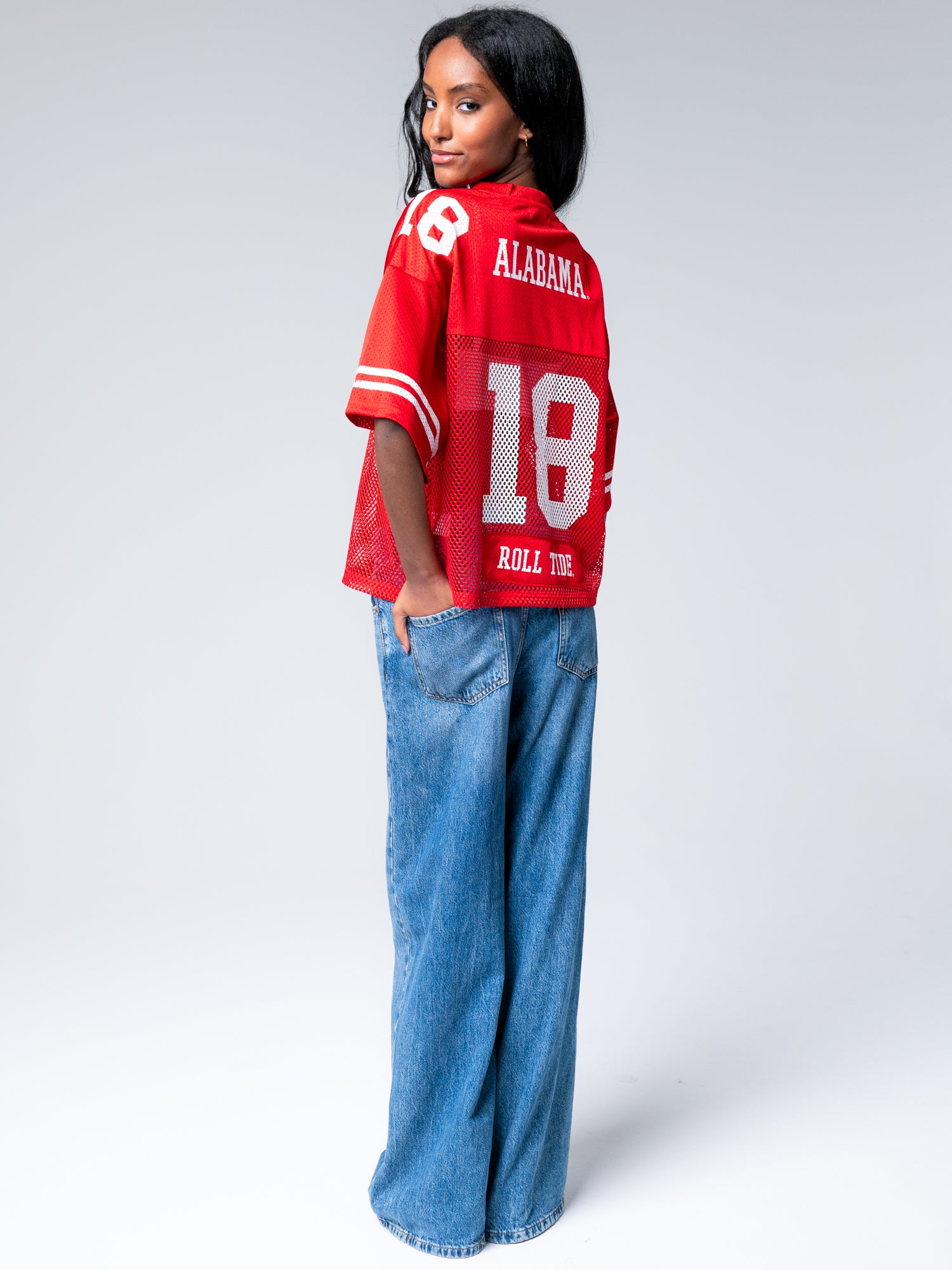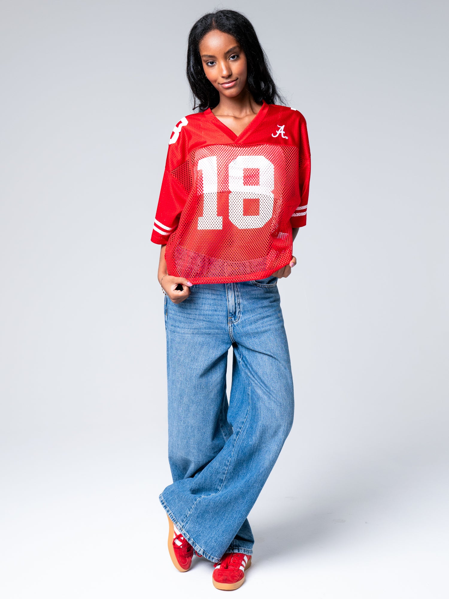 One of a kind! Get ready to turn heads on game day with this unique Practice Jersey from Established and Company, designed especially for University of Alabama fans who love a bold, sporty look. Featuring a mix of small and large mesh holes, vibrant crimson prints, and embroidered Alabama logos, this jersey perfectly blends retro style with team pride. Made from 100% polyester mesh with an oversized fit, it’s the perfect way to show off your Crimson Tide spirit in comfort and style.