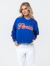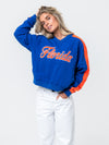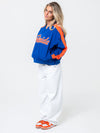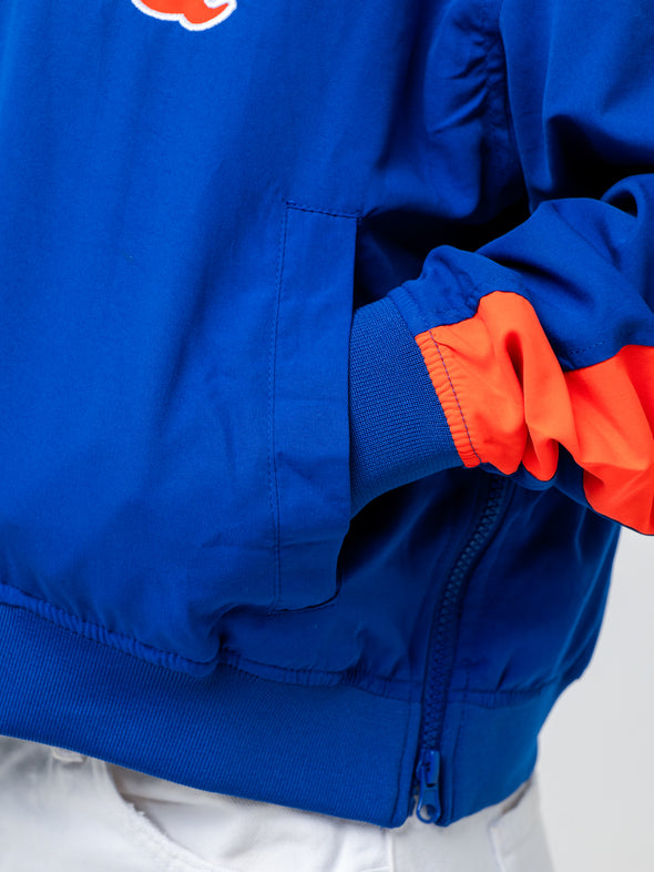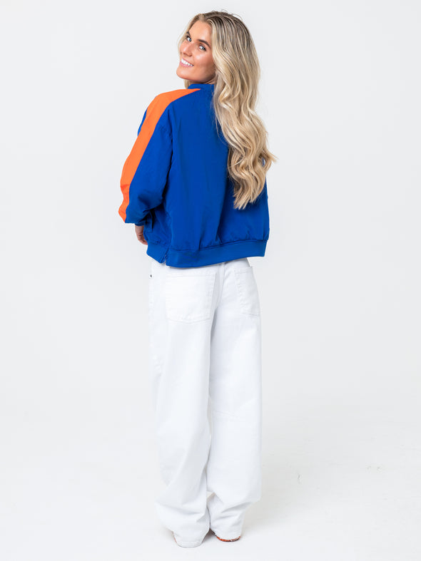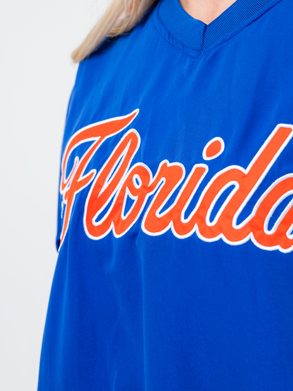 Bring the Gator spirit in this vintage-inspired Florida Cropped Windbreaker by Established & Co. Designed in classic royal blue and orange, this lightweight jacket features tackle twill “Florida” front lettering, bold striped sleeve trim, and a side zipper for comfort and fit. Fully lined and ready for game days, tailgates, or everyday fan flair.